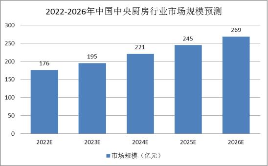也有部分中央廚房開始開設(shè)屬于自己的經(jīng)營超市和餐廳,形成從食材的生產(chǎn)到出售食用完整的供應(yīng)鏈,以達(dá)到盈利的目的。預(yù)計(jì)未來幾年整個(gè)中央廚房市場規(guī)模仍將處于增長態(tài)勢,到2026年,整個(gè)行業(yè)市場規(guī)模將達(dá)到269億元。
