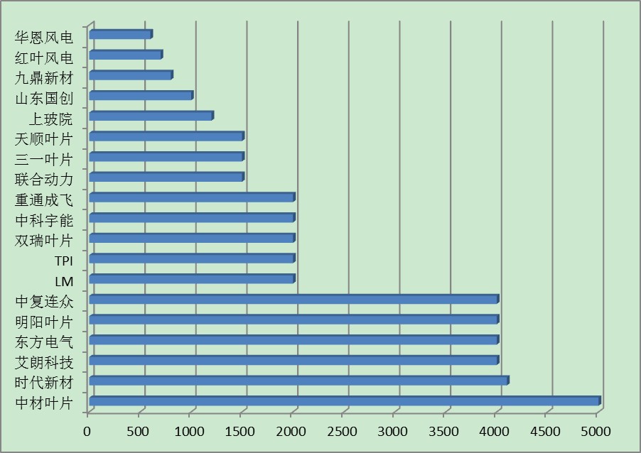 數據顯示,我國兆瓦級風電葉片產能超過4.2萬套,不包括企業正在擴充的產能,其中,中材葉片、時代新材、東方電氣天津葉片、明陽葉片等企業年能產超過3000套。