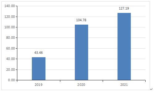在2021年,冷鏈集裝箱租賃的市場規模約為127.19億元,相較于2020年的104.78,提高了21.39%。