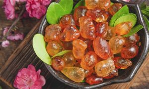 桃膠,是桃樹的樹皮分泌出來的紅褐色或黃褐色膠狀物質。廣義上講,杏樹、櫻桃樹等薔薇科植物分泌的膠狀物也可以叫桃膠...