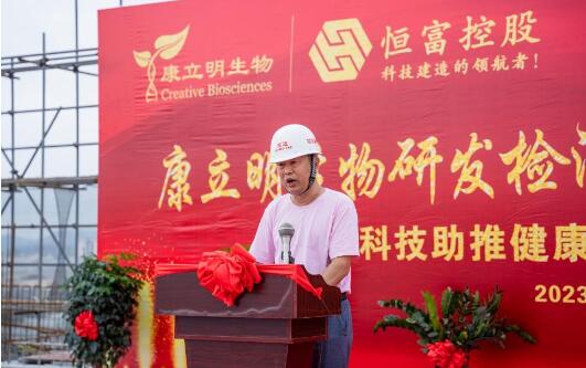 康立明生物創始人、董事長鄒鴻志博士致辭,并宣布康立明生物體外診斷試劑研發檢測生產基地大樓封頂大典正式啟動!