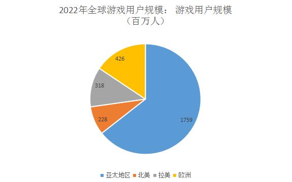 中國游戲行業產業鏈是一個龐大而復雜的體系,涵蓋了游戲軟件開發、硬件制造、配件制造、宣傳推廣、發行銷售及游戲運營等多個環節,每個環節都需要依賴其他環節的支持和配合,共同推動游戲產業的健康發展。2022年全球游戲用戶規模達3198百萬人,其中,亞太地區占比高達55%,北美約占7%,拉美約占10%,歐洲約占13%;游戲收入達196.8十億美元,其中移動游戲占比高達53%,其次為主機游戲,約占27%。