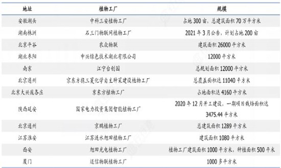 我國部分植物工廠項目概覽