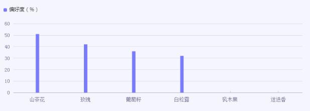 而在精油的品質(zhì)與選材上,消費者們也有著明晰的考量,更青睞于含有天然植物成分的產(chǎn)品。而隨著本國品牌在相關(guān)科研能力上的不斷加強,消費者對于國貨品牌的消費熱情持續(xù)提高,國產(chǎn)產(chǎn)品也更加受到消費者青睞。全拓數(shù)據(jù)顯示,在現(xiàn)如今精油的主要消費群體精油天然植物成分的偏好中,山茶花以51%的偏好度遙遙領(lǐng)先位列榜首,其次是玫瑰(42%)、葡萄籽(36%)、白松露(32%)等,而近些年開始流行的乳木果、迷迭香等均在列。