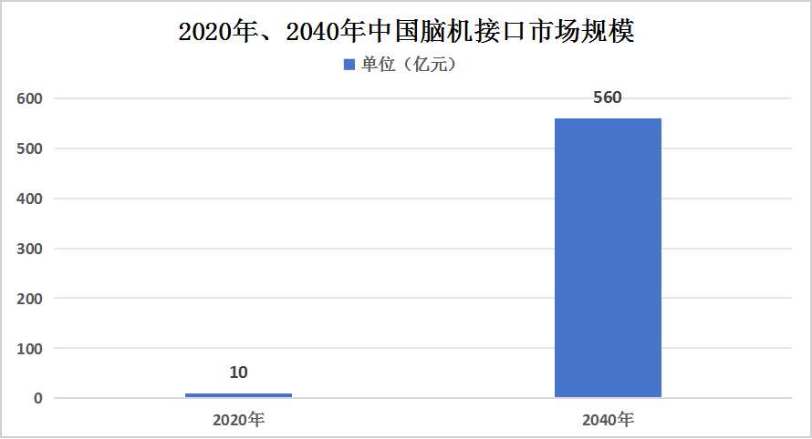 圖表:2020年、2040年中國腦機接口市場規模