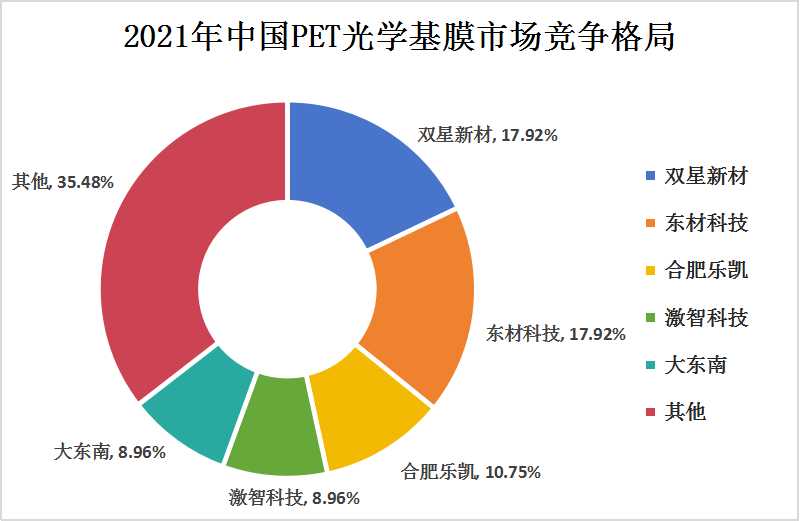 圖表:2021年中國PET光學基膜市場競爭格局