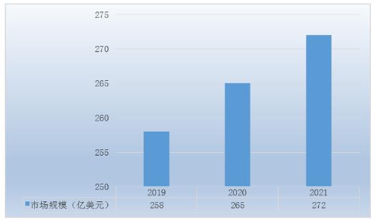 節約能源是資源節約型社會的重要組成部分,我國《國家應對氣候變化規劃(2014-2020年)》提出到2020年,單位GDP二氧化碳排放要比2005年下降40%~45%。作為建筑大國,我國同時是一個能耗大國,在所有能源消耗中,建筑能耗目前占我國能源消費總量的44%,其中建筑使用階段能耗占62%。數據顯示,2019-2021年,全球硅酸鈣市場規模呈現逐年增長的態勢。2019年,全球硅酸鈣行業市場規模為258億美元,2021年全球硅酸鈣行業市場規模達到272億美元。