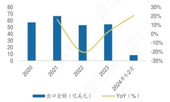 圖表:2020--2024年1-2月吸塵器出口金額及增長(zhǎng)率