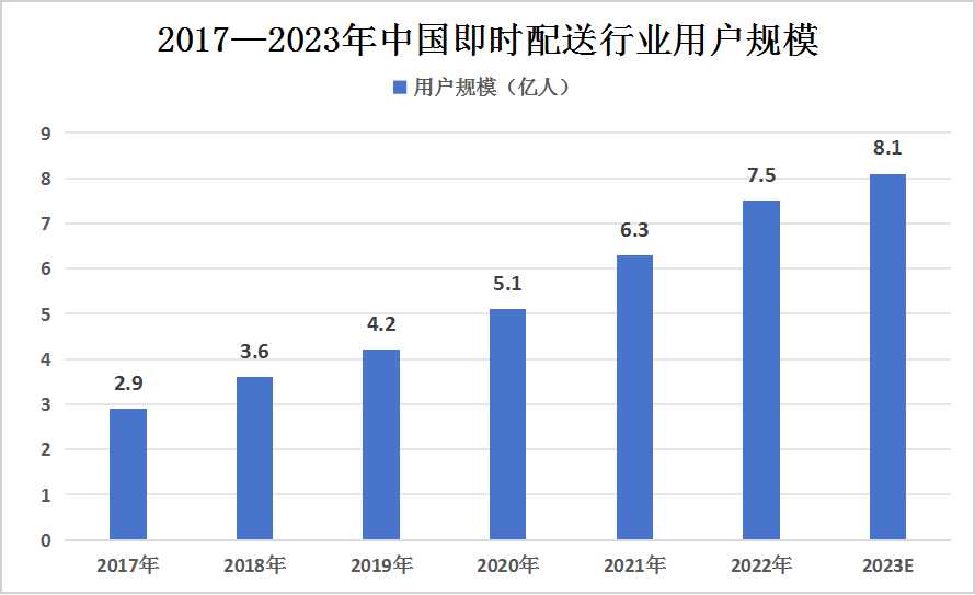 圖表:2017—2023年中國即時配送行業(yè)用戶規(guī)模