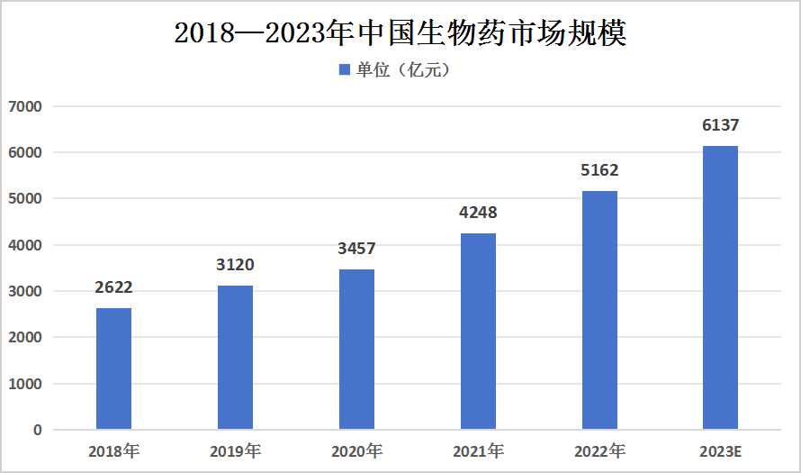 據相關數據顯示,2021年我國生物藥市場規模已達到4248億元,而在2022年更是攀升至5162億元。預計在未來幾年內,我國生物藥市場規模將繼續保持快速增長態勢,有望在2023年達到6137億元。