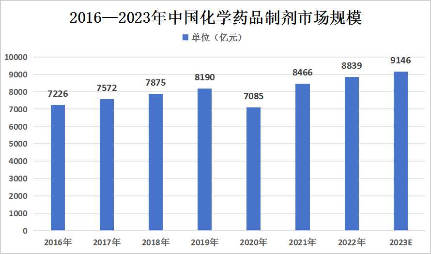 圖表:2016—2023年中國化學藥品制劑市場規模