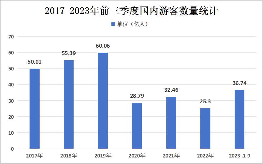 圖表:2017-2023年前三季度國內游客數量統計