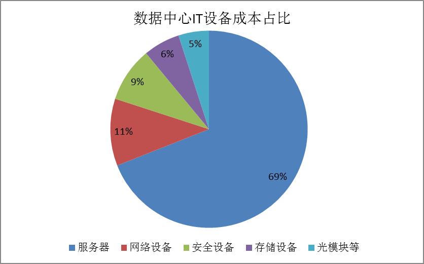 數據中心建設中,主要的成本包括IT設備成本和非IT設備成本。其中IT設備主要包括服務器、網絡設備、安全設備、存儲設備等;非IT設備主要包括柴油發電機組、電力用戶站、UPS、配電柜等。