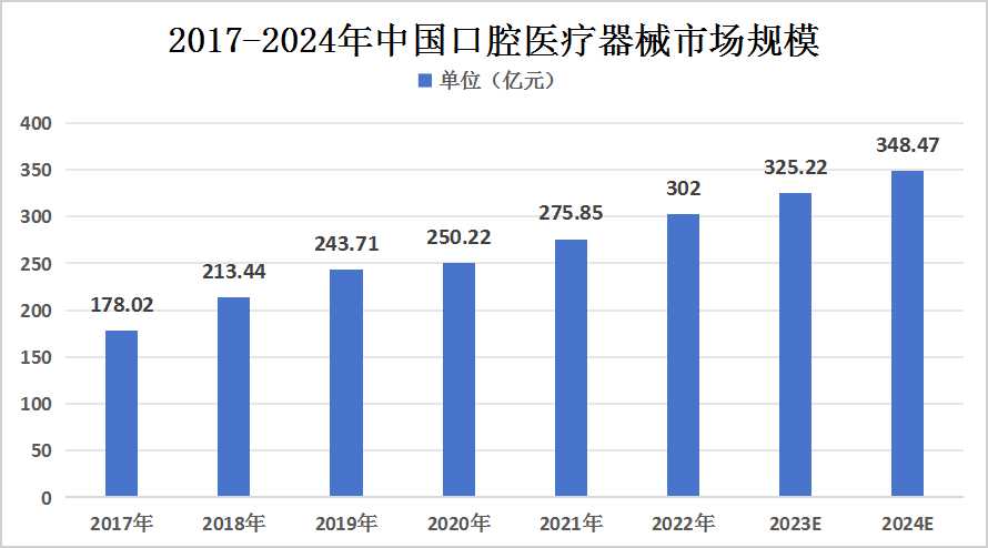 圖表:2017-2024年中國口腔醫療器械市場規模
