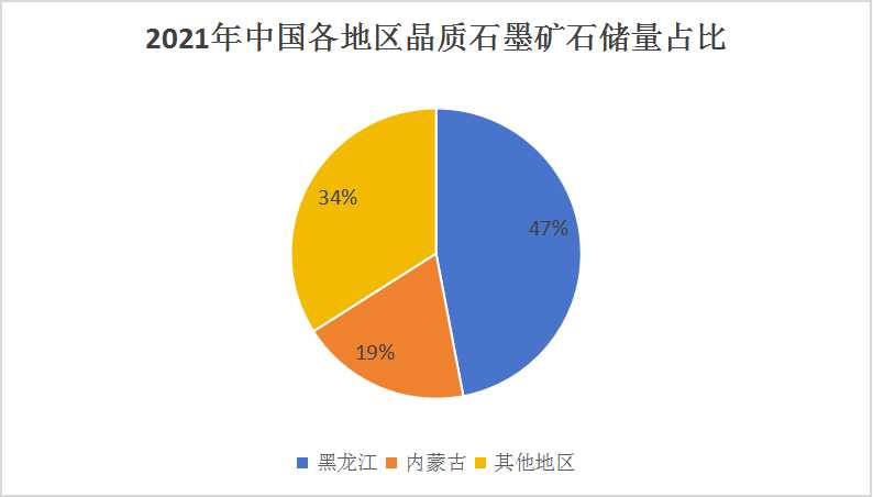 中國是全球石墨資源儲量最豐富的國家之一,擁有豐富的晶質石墨和隱晶質石墨資源。根據統計數據,截至2021年底,中國石墨資源儲量約為7400萬噸,占全球總儲量的22.5%。其中,晶質石墨儲量過半,主要分布在黑龍江、山東、內蒙古、山西、河南等地。黑龍江晶質石墨礦石儲量占比最大,為47%,內蒙古儲量占比為19%,兩省占全國儲量的66%。