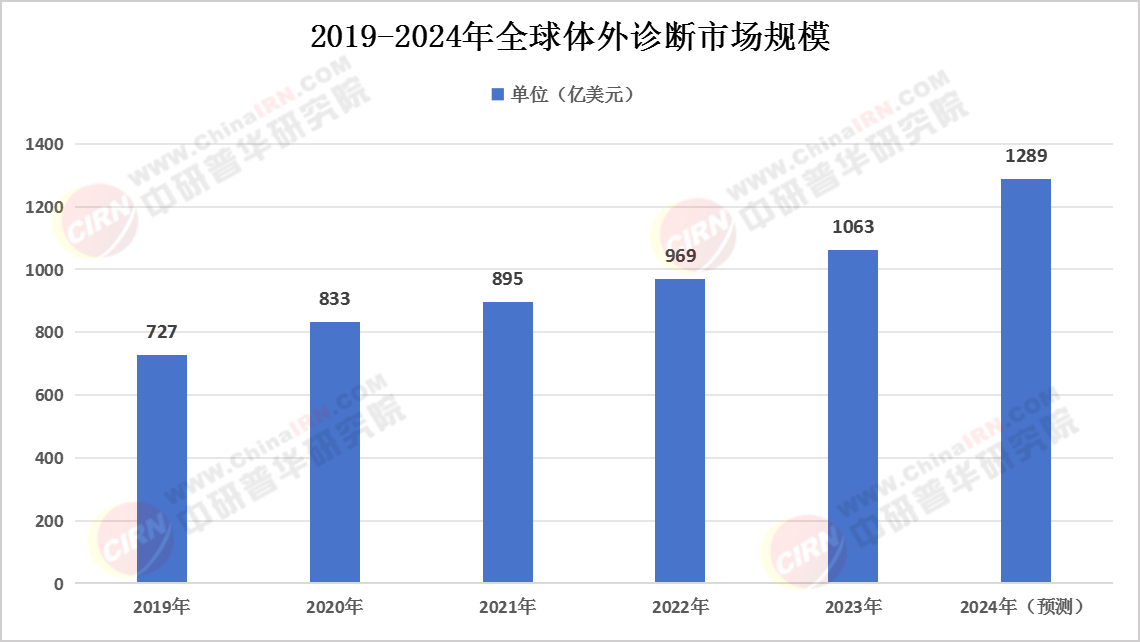 根據中研普華產業研究院發布的《2024-2029年中國體外診斷儀器行業深度調研及投資機會分析報告》分析,2023年全球體外診斷市場規模達到了1063億美元,同比增長9.7%。這一增長速度遠高于全球醫療市場的平均增速,充分顯示了體外診斷行業的活力和潛力。報告預測,受益于技術創新、人口老齡化以及醫療需求增加等多重因素的推動,2024年全球體外診斷市場規模將增至1289億美元,未來幾年內有望繼續保持穩定的增長態勢。