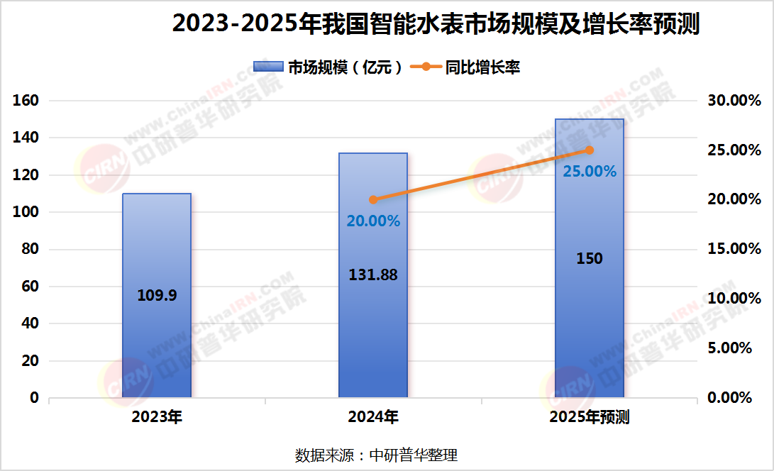圖表1:2023-2025年我國智能水表市場規模及增速預測