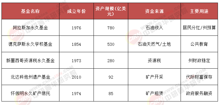 · 北達科他州遺產基金和懷俄明州永久礦產信托基金:代表礦產資源型主權基金,主要投資石油、天然氣和礦產開采收益,旨在平滑預算波動并為子孫后代保留財富。