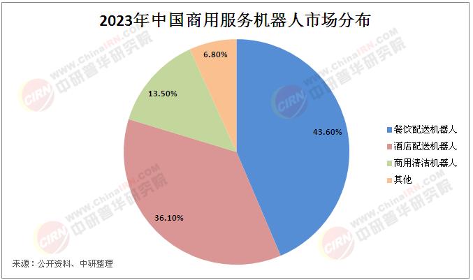 IDC發布的《商用服務機器人中國市場份額2023》顯示,2023年商用服務機器人中國市場整體規模約為13.8億元人民幣,相比2022年增長17.6%,市場顯現回暖跡象。其中餐飲配送機器人、酒店配送機器人的占比分別為43.6%、36.1%,也是各家服務機器人爭搶的核心賽道。