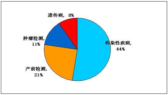 從市場份額分布看,國內的核酸檢測市場以傳染性疾病核酸檢測為主,占比為44%。