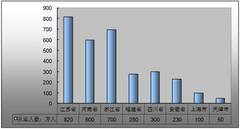2018年江蘇省建筑業從業人員820萬人,約占全省就業人員比例15%。2018年,天津市建筑勞務行業從業人員50萬左右。2018年,河南省建筑勞務行業從業人員數量為600萬人。2018年,浙江省建筑蓮務行業從業人員約700萬人。2018年,福建省建筑勞務從業人員數量為280萬人。2018年,四川省建筑勞務行業從業人員規模為300萬人2018年,安徽省建筑勞務從業人員數量為230萬人。2018年,上海市建筑勞務行業從業人員規模為100萬人左右。