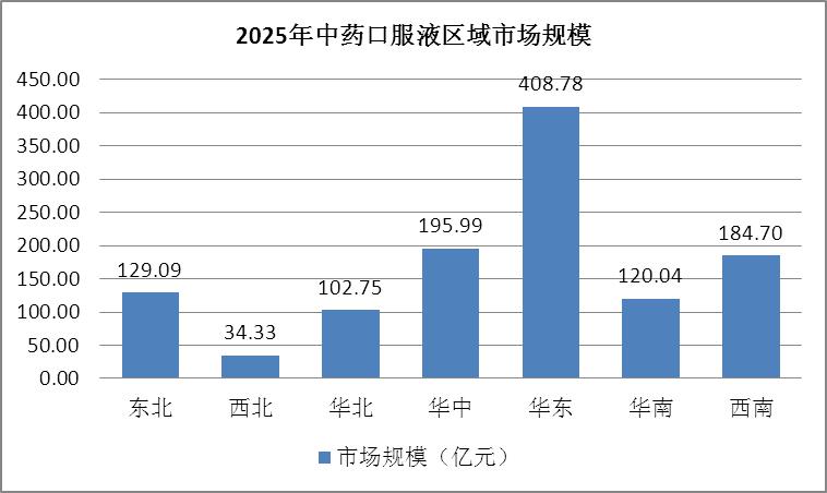 圖表:2025年中藥口服液區(qū)域市場規(guī)模情況