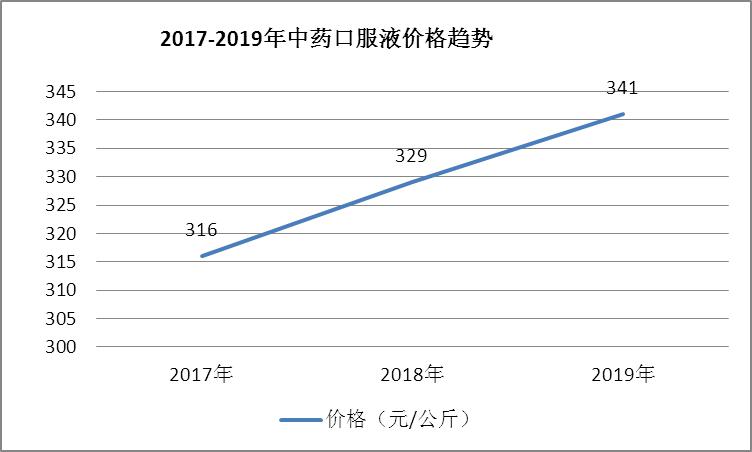 據(jù)數(shù)據(jù)顯示,2017年中藥口服液均價(jià)為316元/公斤,2018年中藥口服液均價(jià)為329元/公斤,2017年中藥口服液均價(jià)為341元/公斤。