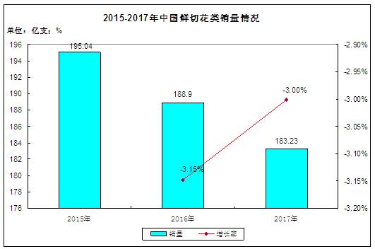 圖表:2015-2017年中國鮮切花類銷量情況