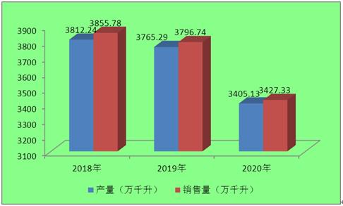 圖表:2018-2020年中國啤酒行業(yè)產銷