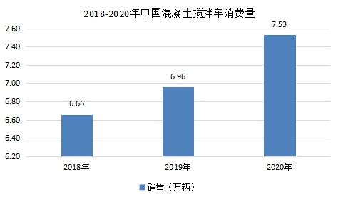 據數據顯示,2018年中國混凝土攪拌車市場規模為227.1億元,2019年中國混凝土攪拌車市場規模為258.25億元,2020年中國混凝土攪拌車市場規模為287.91億元,同比增速為11.48%。