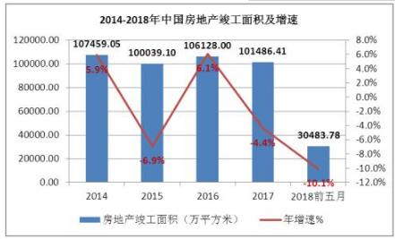 圖表:2014-2018年中國(guó)房地產(chǎn)竣工面積及增速