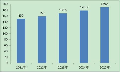 圖表:2021-2025年中央廚房市場規(guī)模(單位:億元)