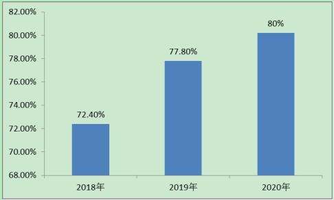 圖表:2018-2020年我國規(guī)模以上連鎖餐飲中央廚房滲透率