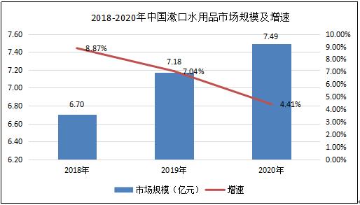 據數據顯示,2020年漱口水市場市場規模為7.49億元,增速為4.41%。