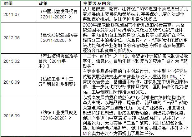 服裝行業作為紡織工業的重要組成部分,在繁榮經濟、吸收就業、滿足社會消費需求等方面發揮著重要作用。在政策法規方面,我國先后頒布了一系列法律法規與政策文件,以規范和推動服裝行業的發展,給予優勢企業更好的發展環境,推動自主品牌的建設和推廣,加快我國服裝行業的結構調整和產業升級。