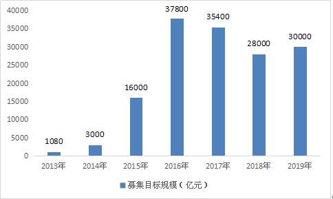 圖表:2013-2019年我國產(chǎn)業(yè)投資基金募集目標(biāo)規(guī)模