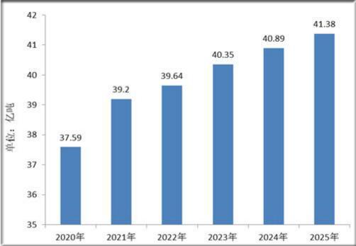 2019年,中國煤炭開采量達到38.46億噸,預計到2025年底,中國煤炭開采兩江達到41.38億噸。