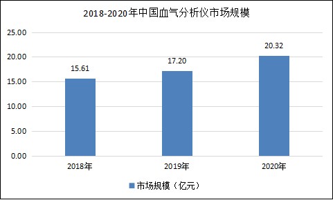 血?dú)夥治鍪侵匕Y患者重要的檢查手段,在心腦血管疾病、急性呼吸衰竭診療、新生兒監(jiān)測(cè)、危重癥監(jiān)測(cè)等過程中發(fā)揮著至關(guān)重要的作用。近年來,我國血?dú)夥治鍪袌?chǎng)規(guī)模逐漸擴(kuò)大,從2018年的15.61億元上漲到2020年的20.32億元,同比增速為18.14%。