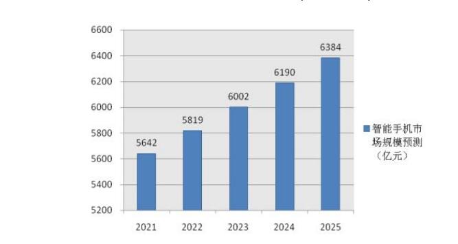 圖表:2021-2025年我國智能手機行業市場規模預測(單位:億元)