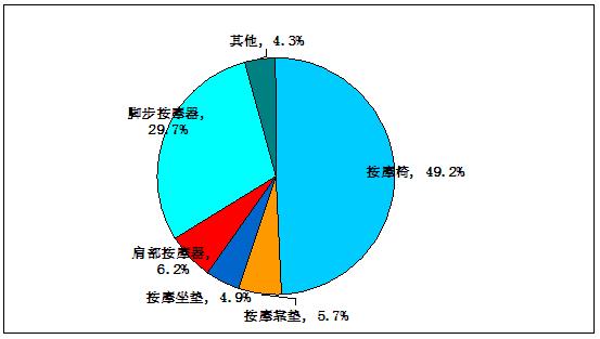 產品市場中,由于按摩椅單價高于小型按摩保健器產品,其占行業銷售額的比重最高;小型按摩保健器品中,腳部按摩保健器相關產品所占份額最大。