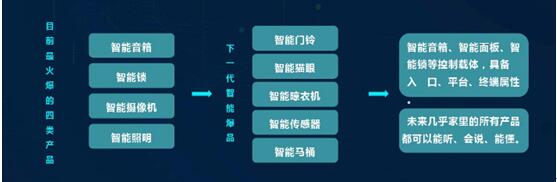 客戶期望智能家居的產(chǎn)品使用壽命與裝修周期相同,可以達(dá)到8-10年,而目前的智能家居產(chǎn)品多在3-5年的生命周期。目前最火爆的四類產(chǎn)品,智能音箱、智能鎖、智能攝像頭、智能照明,未來(lái)可能包括智能門鈴、智能貓眼、智能晾衣機(jī)、智能傳感器等產(chǎn)品。智能音箱、智能面板、智能鎖等控制載體,可以具備入口、平臺(tái)、終端屬性,隨著產(chǎn)品的演進(jìn),未來(lái)幾乎家里的所有產(chǎn)品都可以能聽、會(huì)說(shuō)、能懂。
