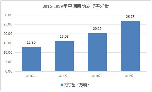 圖表:2016-2019年自動駕駛需求市場份額(單位:億元)