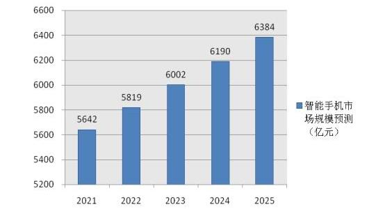圖表:2021-2025年我國智能手機行業市場規模預測(單位:億元)