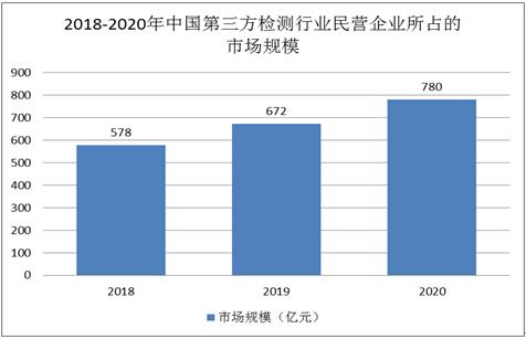 數據顯示,2018年第三方檢測行業民營企業所占的市場規模為578億元,到2020年第三方檢測行業民營企業所占的市場規模為780億元,同比增長16.1%。