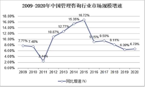 圖表:2009-2020年中國管理咨詢行業市場規模增速