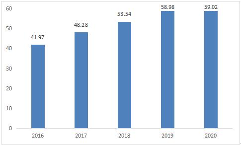 圖表:2016-2020年管理咨詢機構TOP50收入規模(億元)