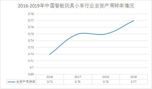 圖表:2016-2019年中國智能玩具小車行業總資產周轉率情況