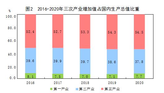 圖表:2016-2020年三次產業增加值占國內生產總值比重