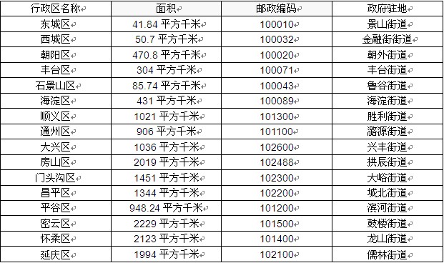 截至2020年,北京市共轄16個市轄區,分別是東城區、西城區、朝陽區、豐臺區、石景山區、海淀區、順義區、通州區、大興區、房山區、門頭溝區、昌平區、平谷區、密云區、懷柔區、延慶區。北京市人民政府駐通州區運河東大街57號。