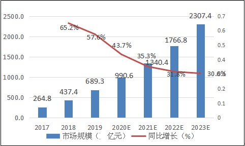 其中,公有云市場規模達到689億元,相比2018年增長57.6%,預計2020-2022年仍將處于快速增長階段,到2023年市場規模將超過2300億元。私有云市場規模達645億元,較2018年增長22.8%,預計未來幾年將保持穩定增長,到2023年市場規模將接近1500億元。